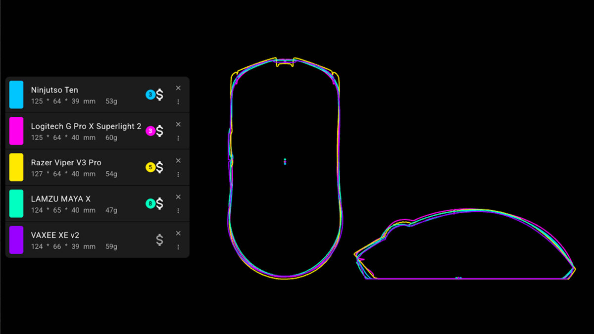 主な競合として挙がるのはLogicool G Pro X Superlight 2、Razer Viper V3 Pro(またはLAMZU Maya X)のような代表的な製品ですが、このマウスもこれらと同じく、多くのユーザーに受け入れられそうな形状をしています。