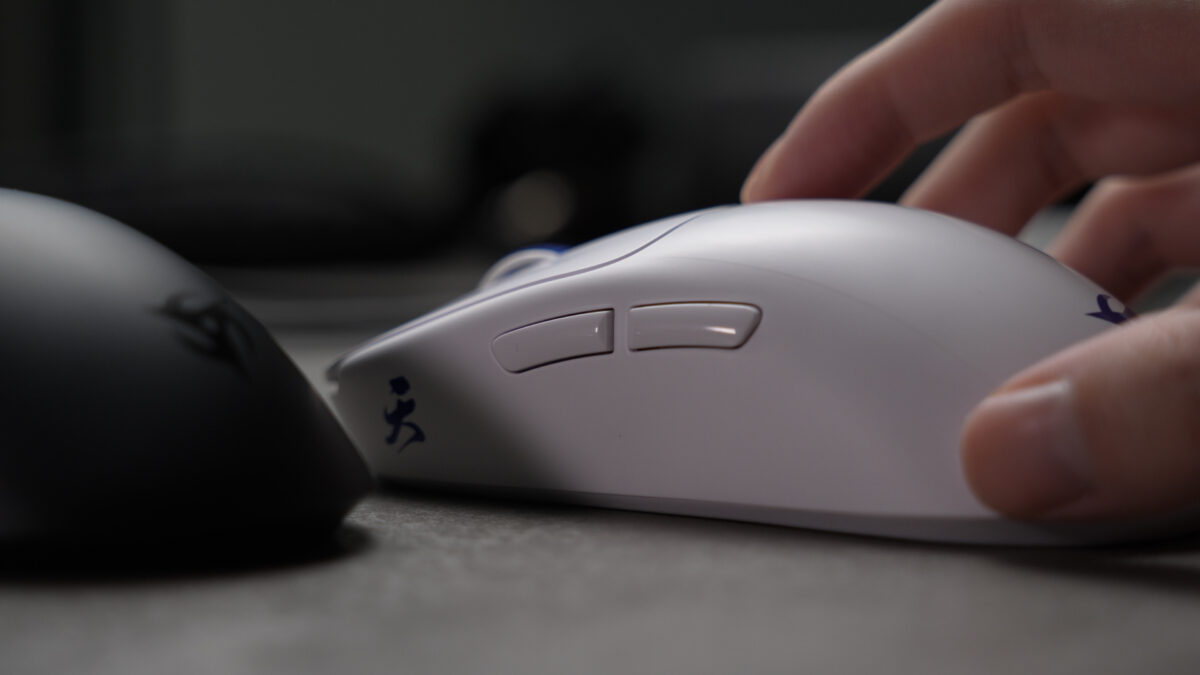 サイドボタンの固さは普通くらい。プリトラベル・ポストトラベルどちらもはっきりと認識できる程度あります。特に手前側は深くまで押し込めてしまいます。 GPXのようなフニャッとした感触で、Viper V3 Proのようなカチッと詰まった押し心地ではありません。通常使用では困らない範囲ですが気になる方は注意してください。
